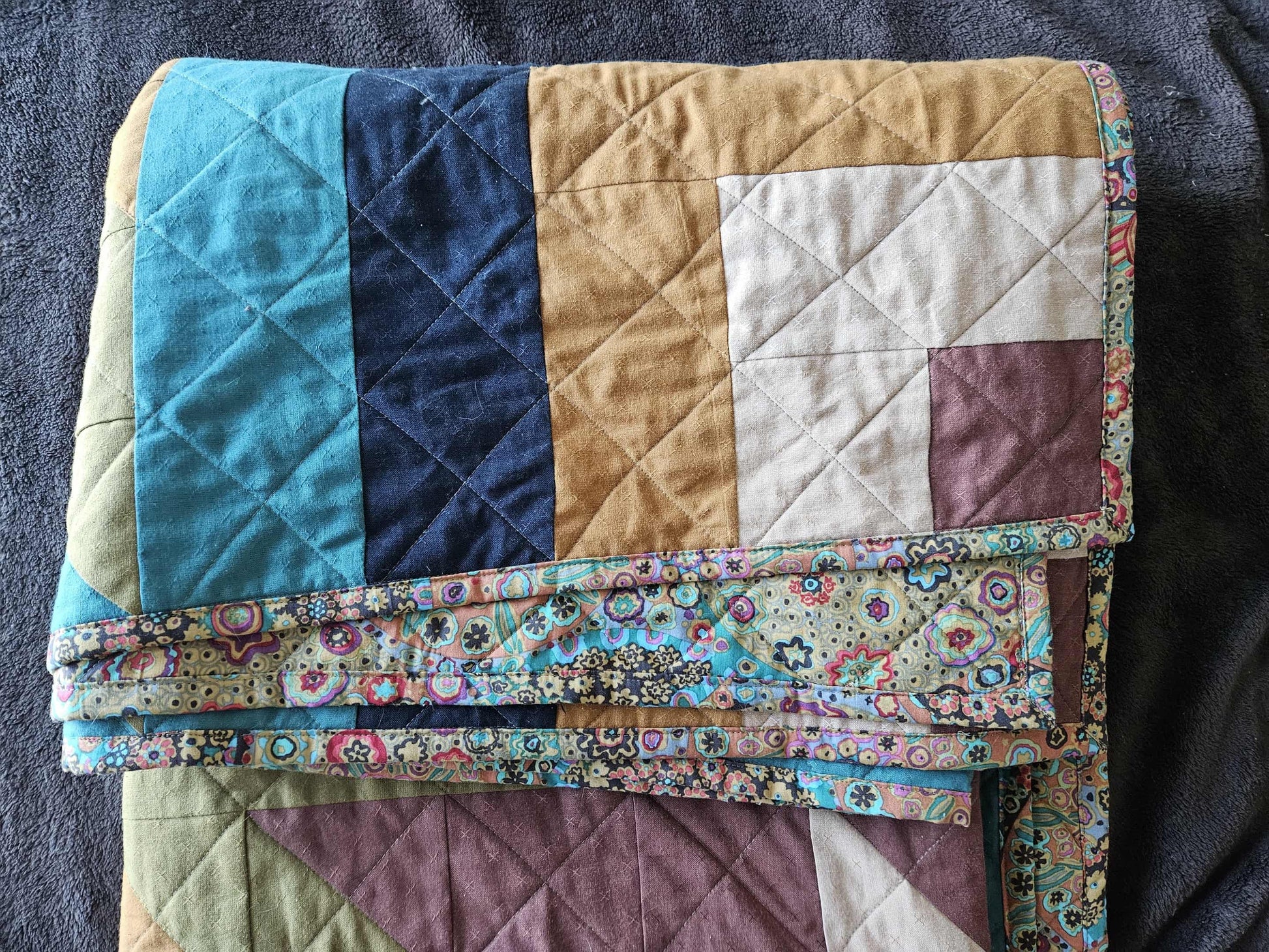 It was hard to pick sample photos because all my testers' quilts turned out so amazing (and so different from each other!) which is one thing I love about this pattern; it can have a bold and modern look like these tester versions by Anna Buettner (jewel throw) or Karen Brooks (baby blues), or a more traditional, down-to-earth vibe like the cover version or the one by tester Trine Davey of Lavender Sewing Patterns (green baby with top/bottom borders added based on the throw instructions).