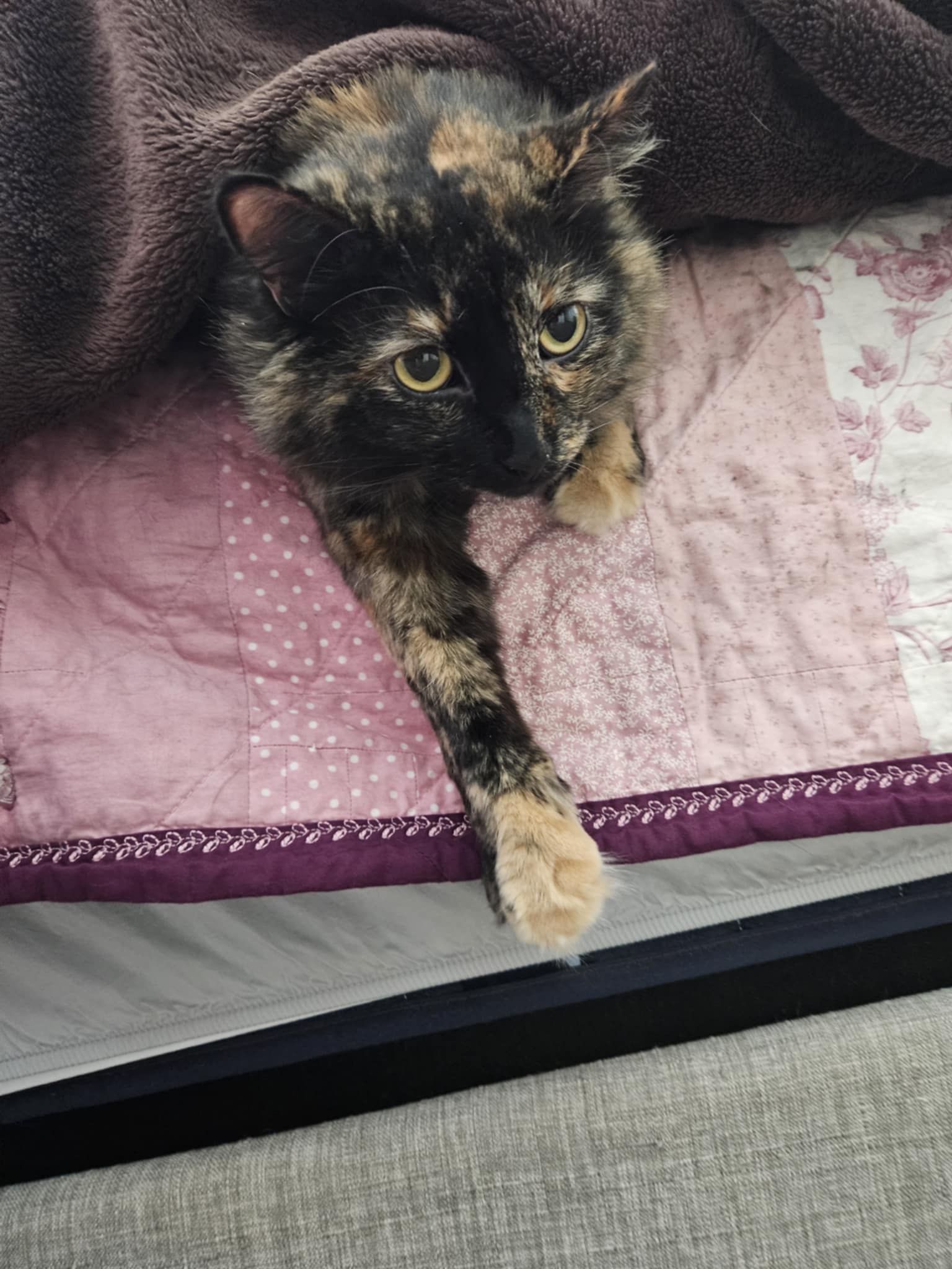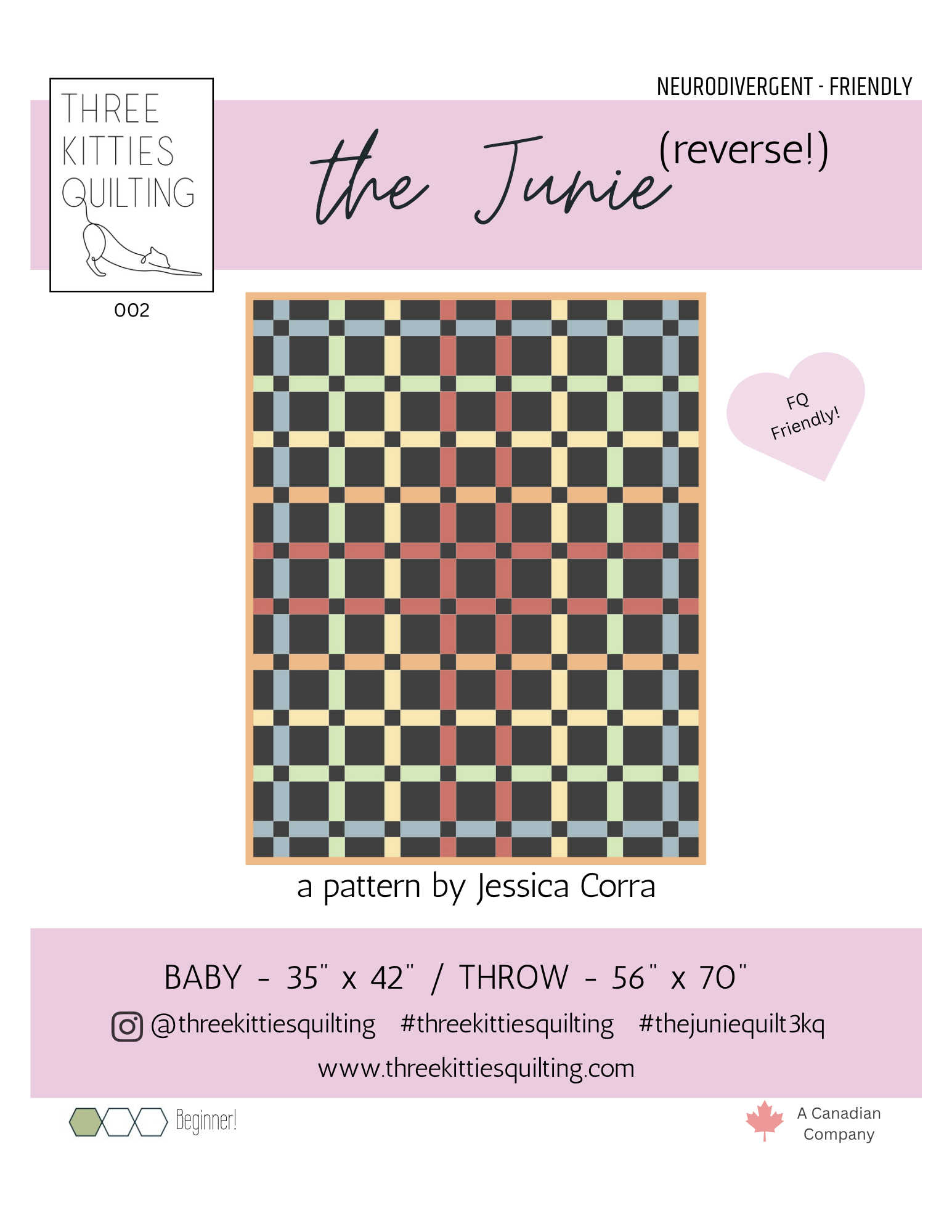 The Junie Quilt is named after our large-breed-mix rescue tortoiseshell kitty, Junipurr (last photo!). I believe pet ownership can be therapeutic and am indebted to the furry friends in my life. 10% of all proceeds from the Junie pattern will go to the MEOW Foundation, the no-kill cat-only rescue where we got her.
